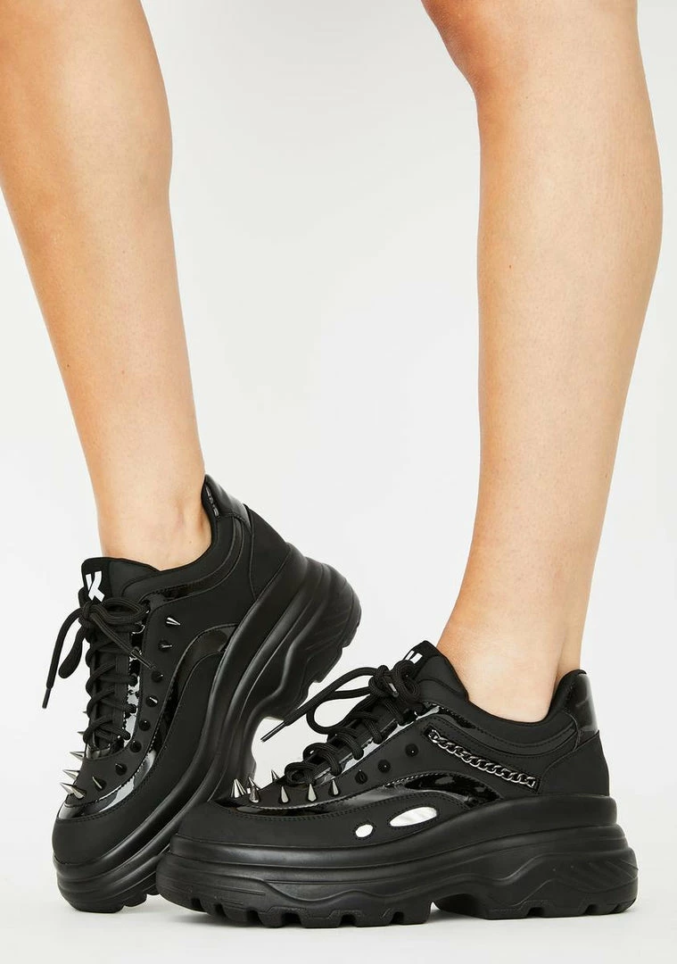 makinΓ’ΒΒ them put some respect on your name, bb! Have them watchinΓ’ΒΒ their back while you stay looking sikk AF in these platform lace-up sneakers with studded spikes all over and chain accents on them.
