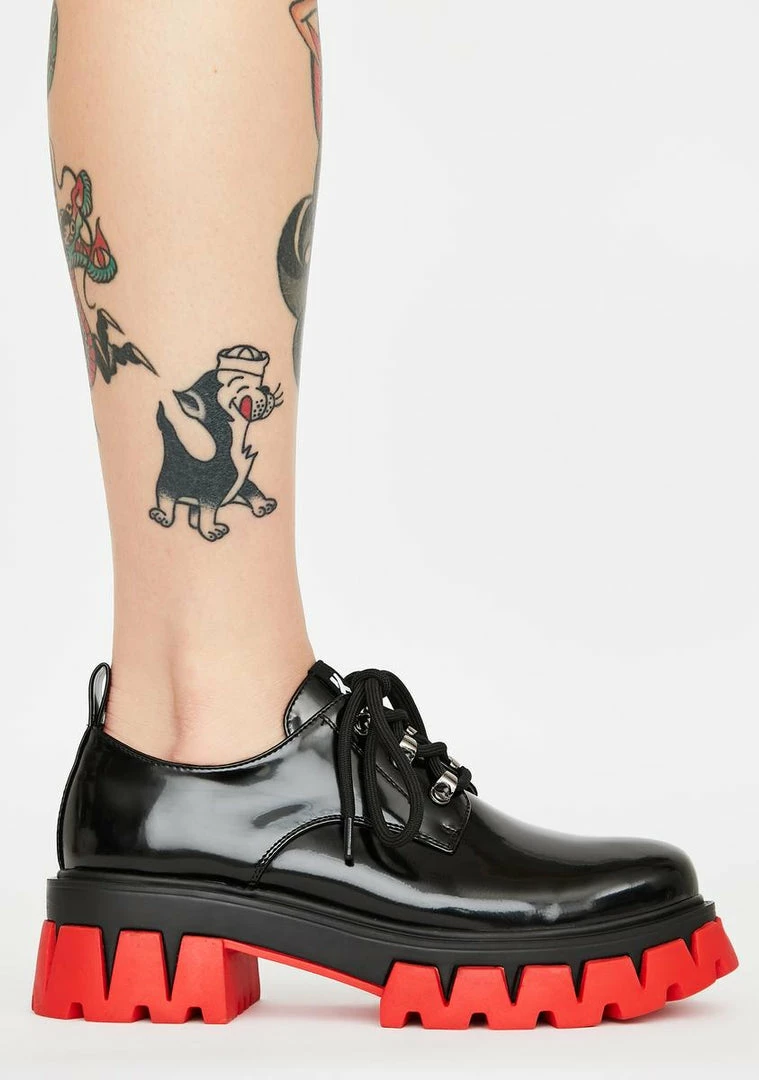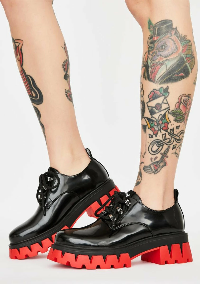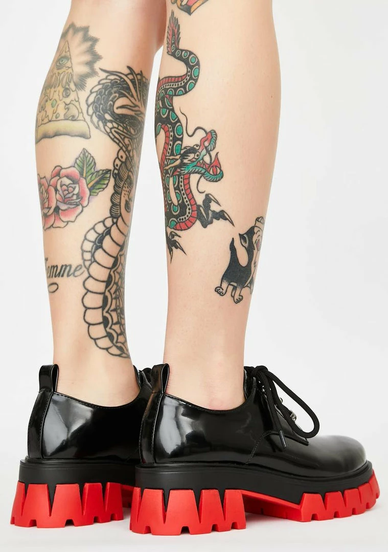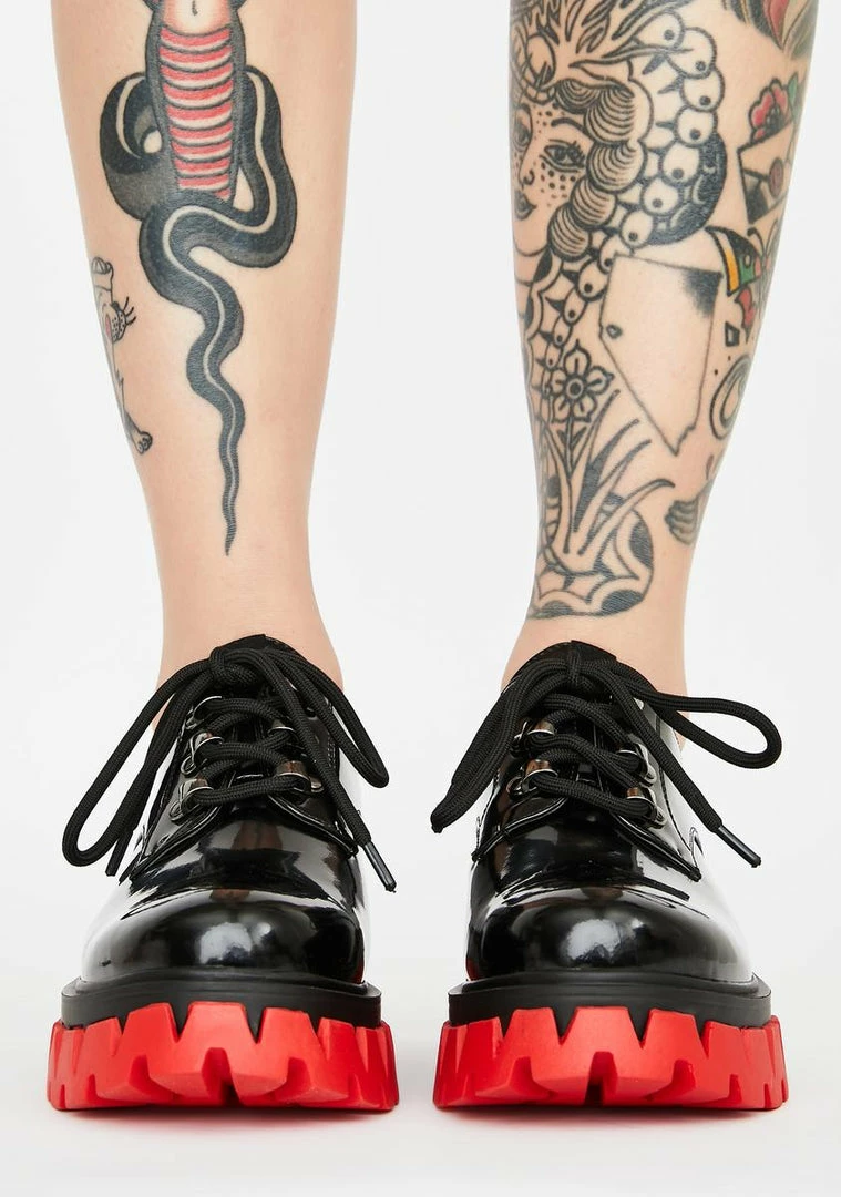 yaaass love that for you, queen! You’re always lookin’ bomb AF in these patent vegan leather oxfords that have adjustable lace-up closures and hella chunky platform soles.