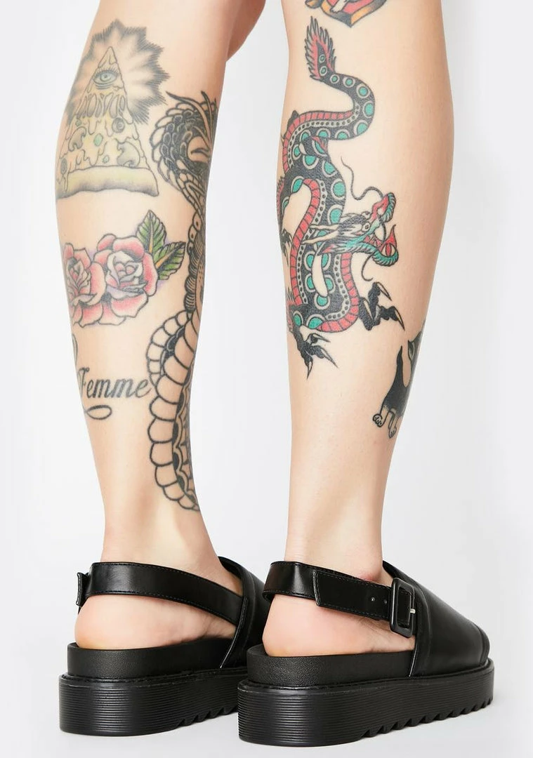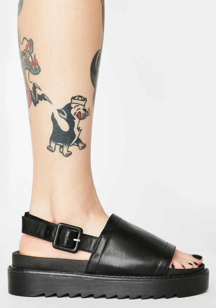 cuz ya always come out on top. Make moves in these rad vegan leather sandals that have chunky treaded platform soles, thicc upper straps, slingback heel straps and side buckle closures.