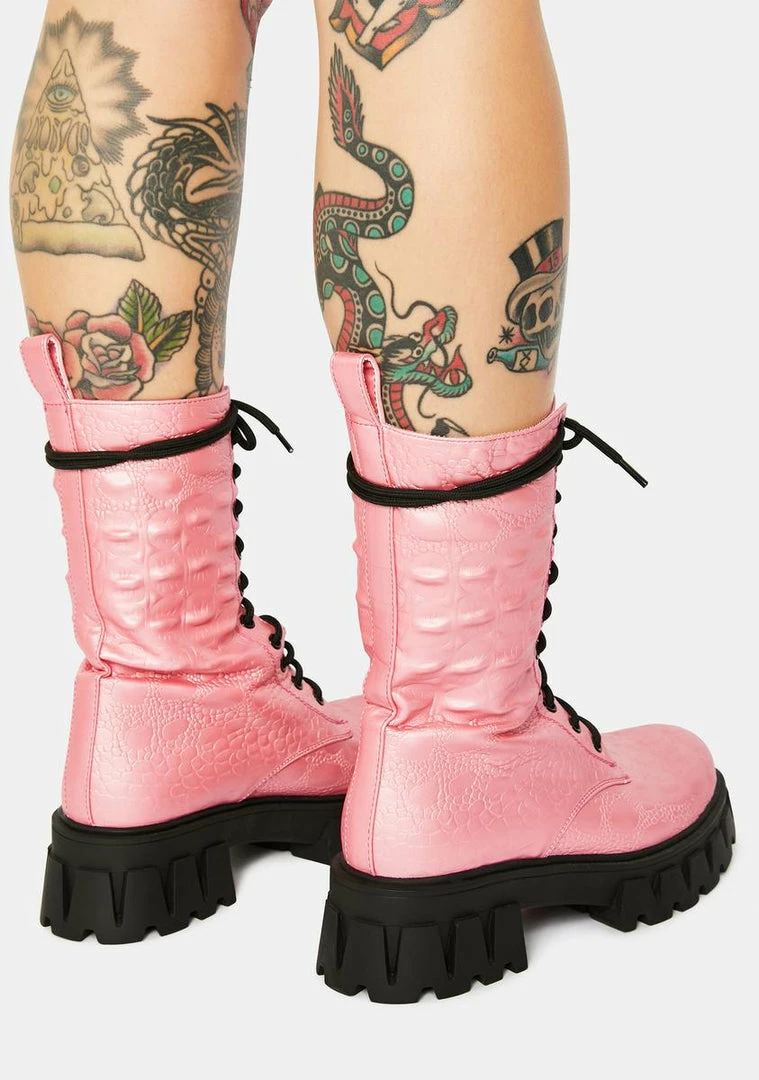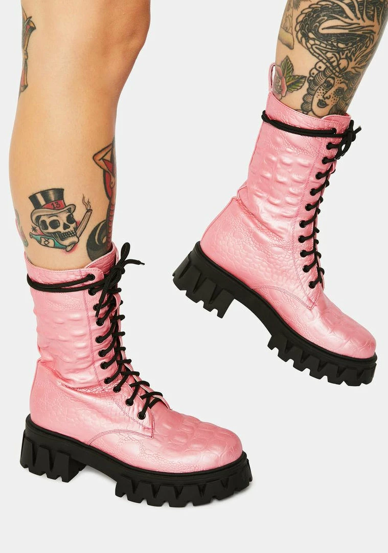 Wholesale π Koi Footwear π₯Ύ Boots & Booties Fontane Pink Croc Combat π₯Ύ Boots π