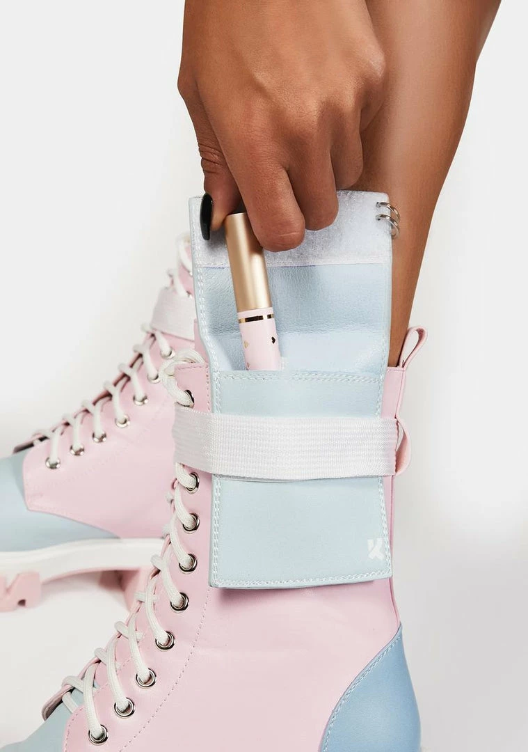 cuz you never turn downa fight! Ya came to win in these combat boots that have a vegan leather construction with chunky treaded contrast platforms, sikk side utility pockets and adjustable lace-ups.