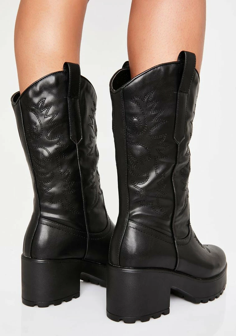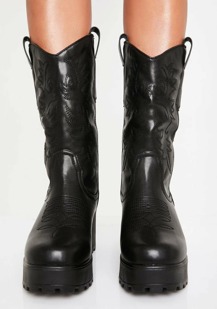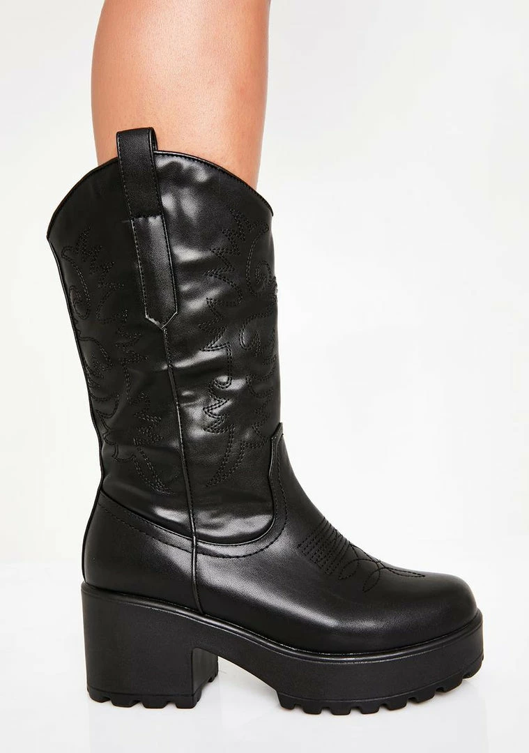 uz you love playing devilâs advocate! Give em hell in these dope AF boots that have a cowboy design, chunky heels, Nâ pull tabs!