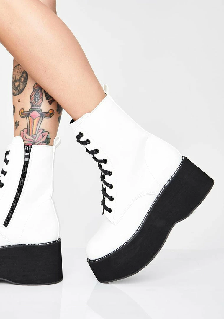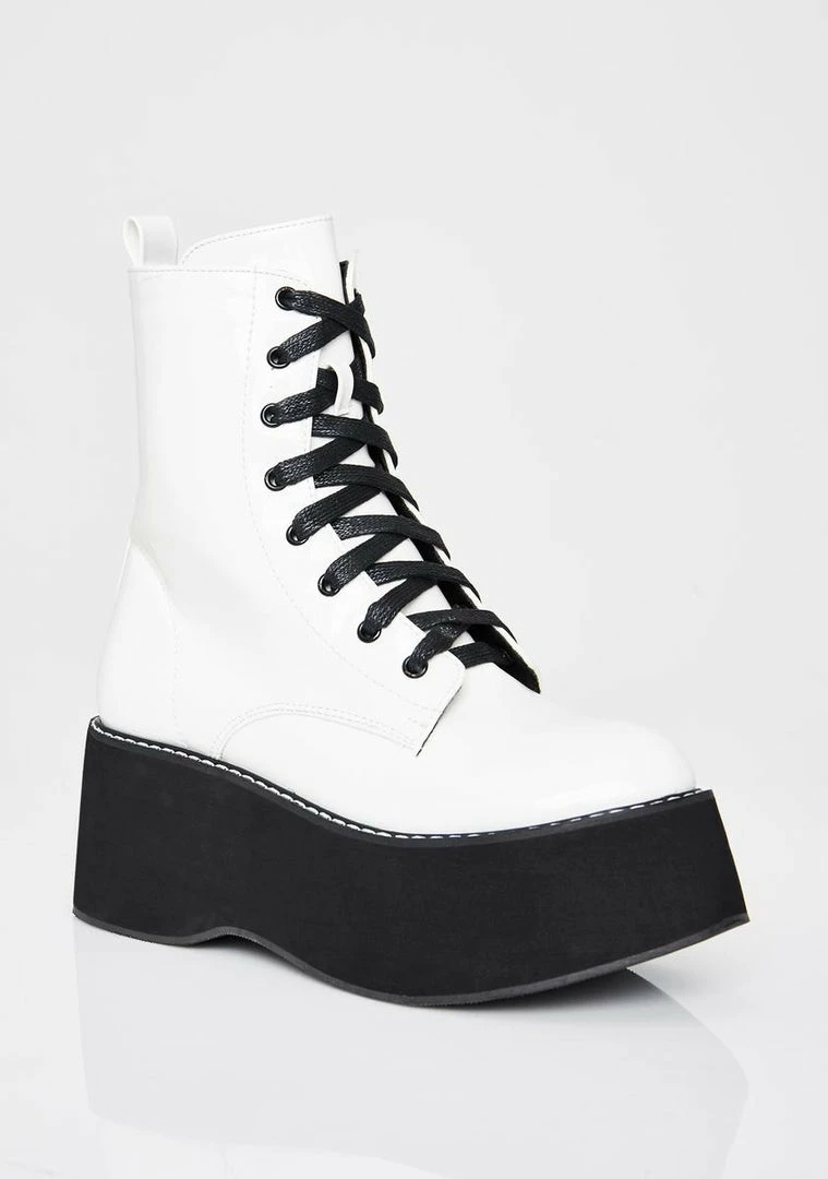 ur a lil neckbreaker in these stompinΓ’ΒΒ temptress boots. Look dope AF in these platform boots that have side zip NΓ’ΒΒ front lace up closures, sikk patent material NΓ’ΒΒ are hella comfy.