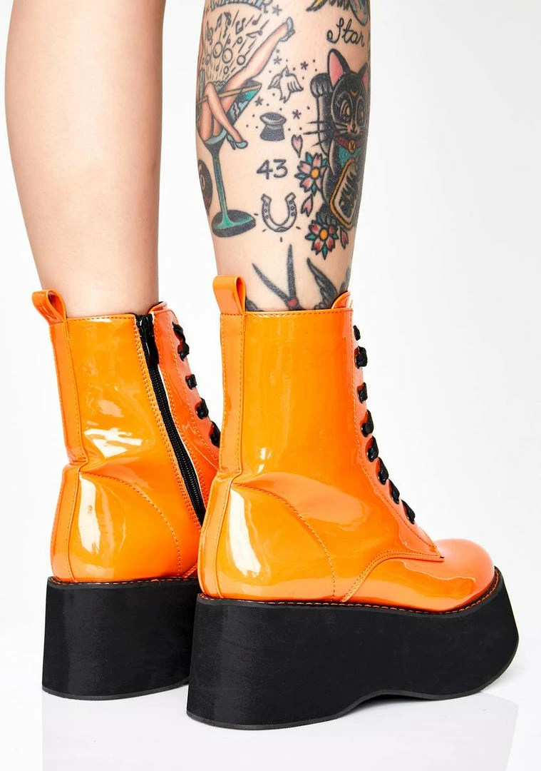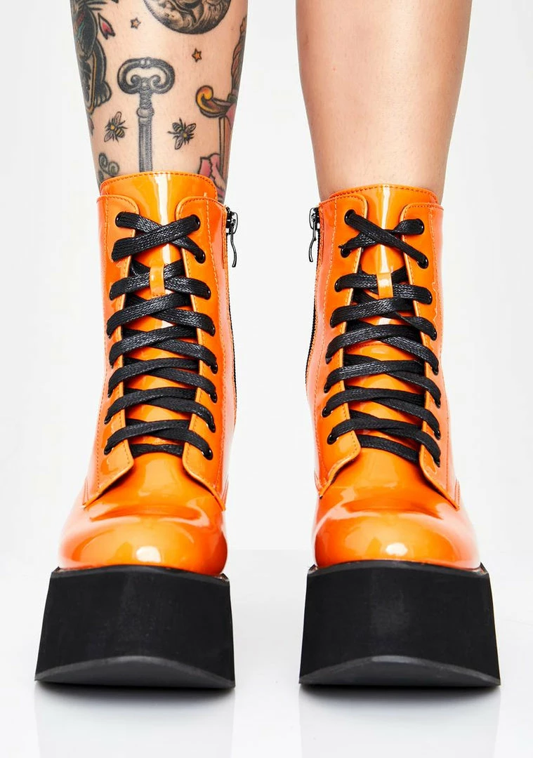 ur a lil neckbreaker in these stompinΓ’ΒΒ temptress boots. Look dope AF in these platform boots that have side zip NΓ’ΒΒ front lace up closures, sikk patent material NΓ’ΒΒ are hella comfy.