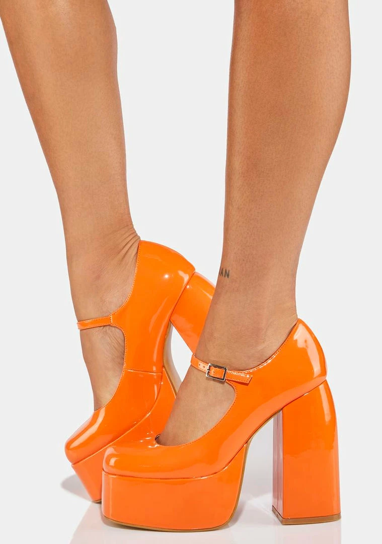 cuz you’re one in a million babe. These heels have a vegan patent leather construction, a square toe design, block heels, platform soles, and buckle strap closures.