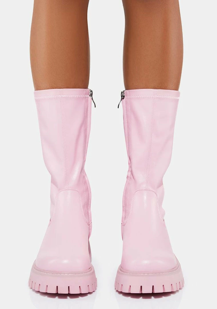 have a vegan leather construction, side zip up closures, and chunky soles.