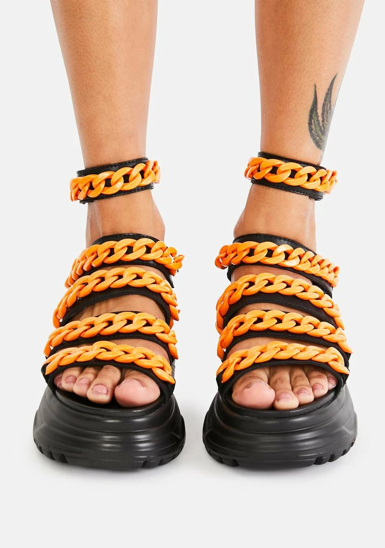 Cheap โค๏ธ Koi Footwear Orange Strident Chain Gladiator ๐ฉด Sandals ๐