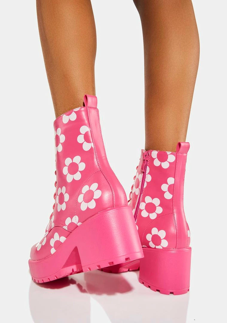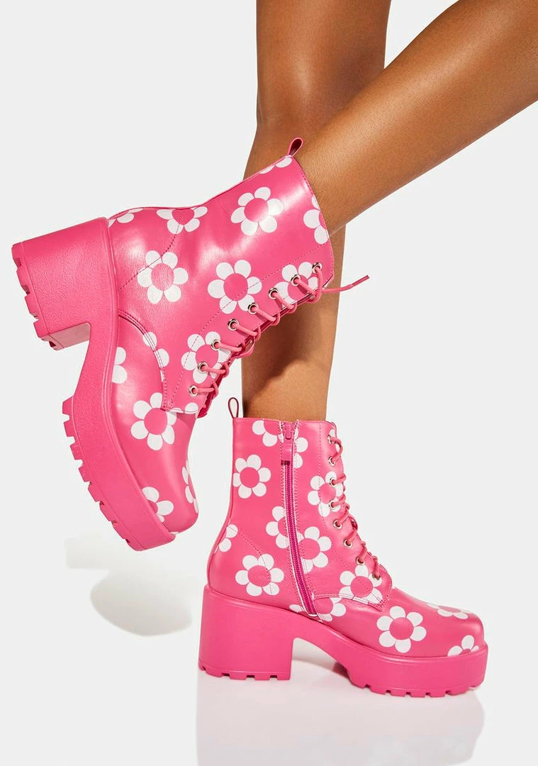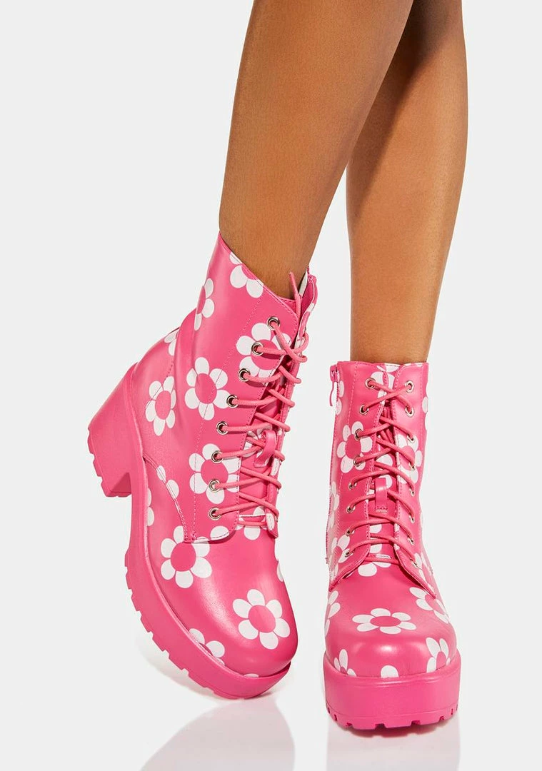 Cheapest โ๏ธ Koi Footwear Orchis Charm Pink Flower Power Combat ๐ฅพ Boots ๐