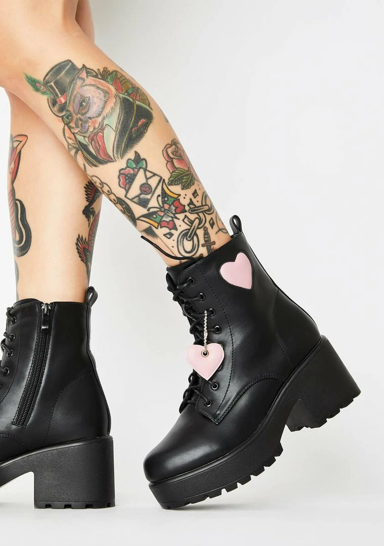 will have ya lookin’ like a badazz trailblazer. Tell ’em to kick rocks in these sikk ankle boots that have classic lace up N’ side zip closures, treaded soles and sweet hearts all ova with a detachable chain.