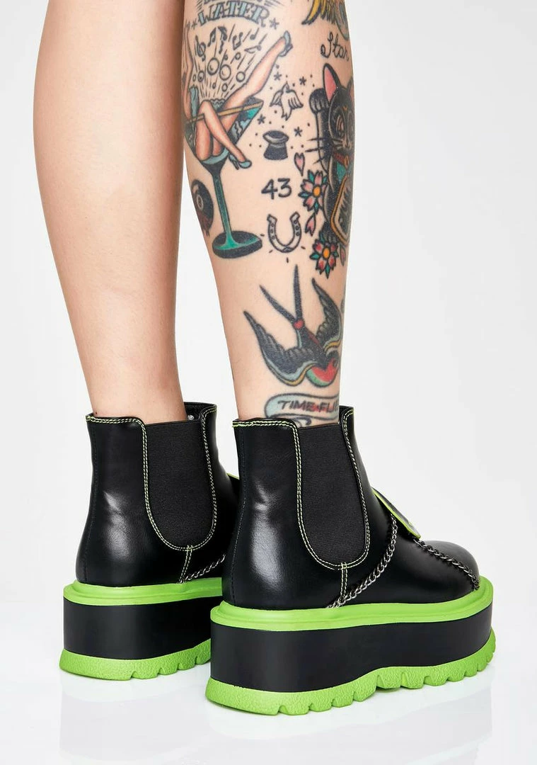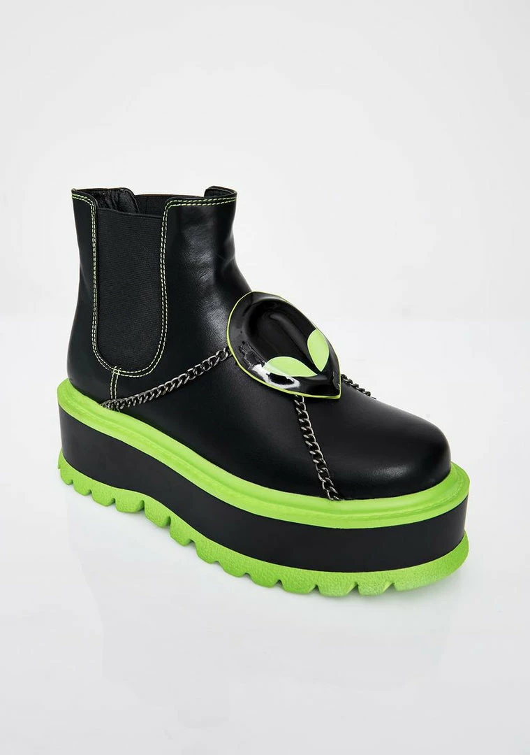 will have ya stealinΓ’ΒΒ ya alien in style. Storm the scene in these dope ankle boots that have xxtra chunky platforms, patent alien head, chain hardware NΓ’ΒΒ sikk sole detailing.