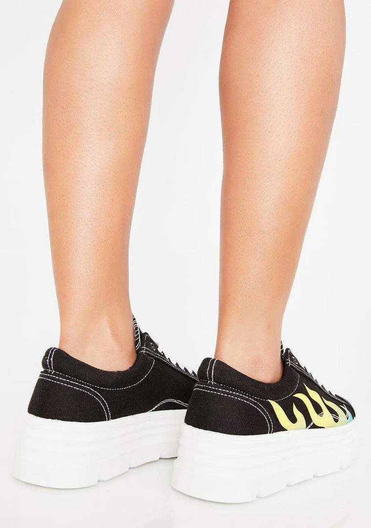 got ya racing to the finish line! Leave ’em in the dust with these too hot platform sneakers that have chunky cleated soles, adjustable lace-up closures, and a flame panel design.