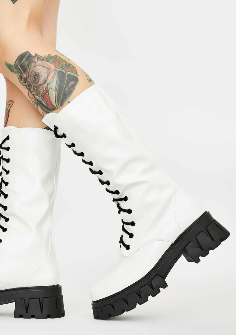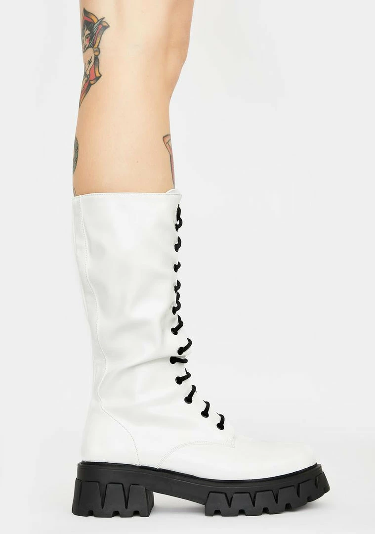Hot Sale ⭐ Koi Footwear White Trinity Patent Calf High 🥾 Boots ✨